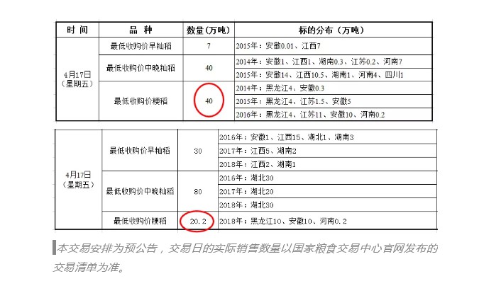 國(guó)家最低收購(gòu)價(jià)水稻小麥各增加100萬(wàn)噸投放量,起拍價(jià)格不變,銷(xiāo)售時(shí)間不變。其中,水稻增加到217.2萬(wàn)噸 中晚稻提前一個(gè)月上場(chǎng)。2020年中晚稻4月17日開(kāi)拍,較去年提前了1個(gè)月有余,也比市場(chǎng)預(yù)期的4月下旬早了幾天。從時(shí)間上可以看出,政府這次反應(yīng)較快,平抑糧價(jià)的決心很大!