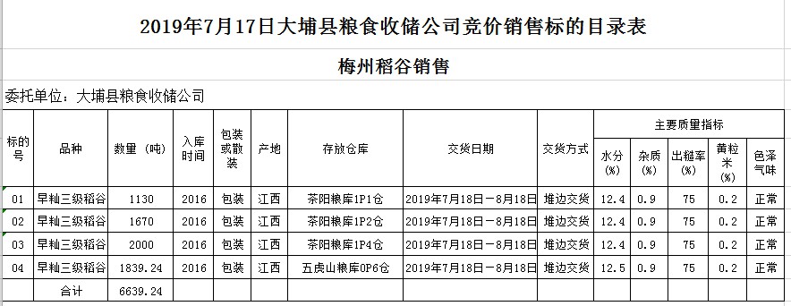 交易時(shí)間和地點(diǎn):2019年7月17日(星期三)上午10時(shí)。廣東省梅州市彬芳大道南161號(hào)梅州市糧食交易中心3樓。